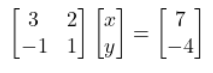 | Example 3.3. Solving systems of linear equations with vectors and matrices Scenario Being Modeled: –Moth is moving along Line 3x + 2y = 7. – Butterfly is moving along Line x – y = 4. Goal or Problem-Solving: Find out where these two lines intersect, meaning where they meet at the same point (x, y). This intersection point satisfies both equations simultaneously. Vector Representation: Each line can be represented by a vector that gives us direction and starting point. To get normal and direction vectors for each linear equation and the corresponding matrix, we can start by rewriting each equation in the form of the standard linear equation, ax + by = c, which is useful for identifying the normal vector (a, b). – For Line 3x + 2y = 7: We can think of the vector (3, 2) as representing how much to move in the x-direction for every unit moved in the y-direction. This vector can be combined with a constant vector (starting point) to create the full equation. – For Line x – y = 4: The vector (1, -1) represents moving 1 unit in the x-direction and -1 unit in the y-direction. Matrix Representation: To represent the two linear equations in matrix form, rule is that I need to express them as a single equation of the form ax + by = c. This is first time we encounter a rule in linear algebra, the ‘a’ can be – or +, but ‘b’ has to be +. – For Line 3x + 2y = 7: this can be written directly in the standard form. – For Line x – y = 4: I’ll rearrange it to match the structure of the first equation, so subtracting x and adding y on both sides gives x – y = 4 → x – y -x +y = 4 -x +y → 0 = 4 -x +y → -x + y = -4 Now, I can write both equations in matrix form by combining their coefficients: |