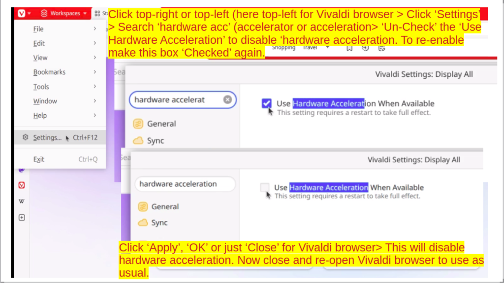 References: Enable/Disable Hardware Acceleration in Settings | Vivaldi Browser https://forum.vivaldi.net/topic/27011/enable-disable-hardware-acceleration-in-settings