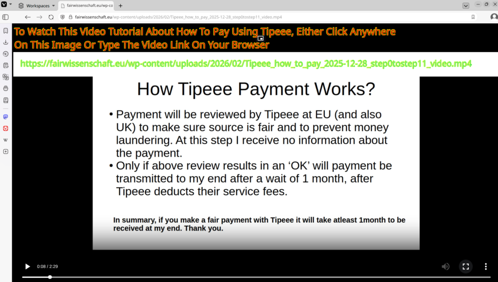 Video Link (Using Above Link To Pay) https://fairwissenschaft.eu/wp-content/uploads/2026/02/Tipeee_how_to_pay_2025-12-28_step0tostep11_video.mp4